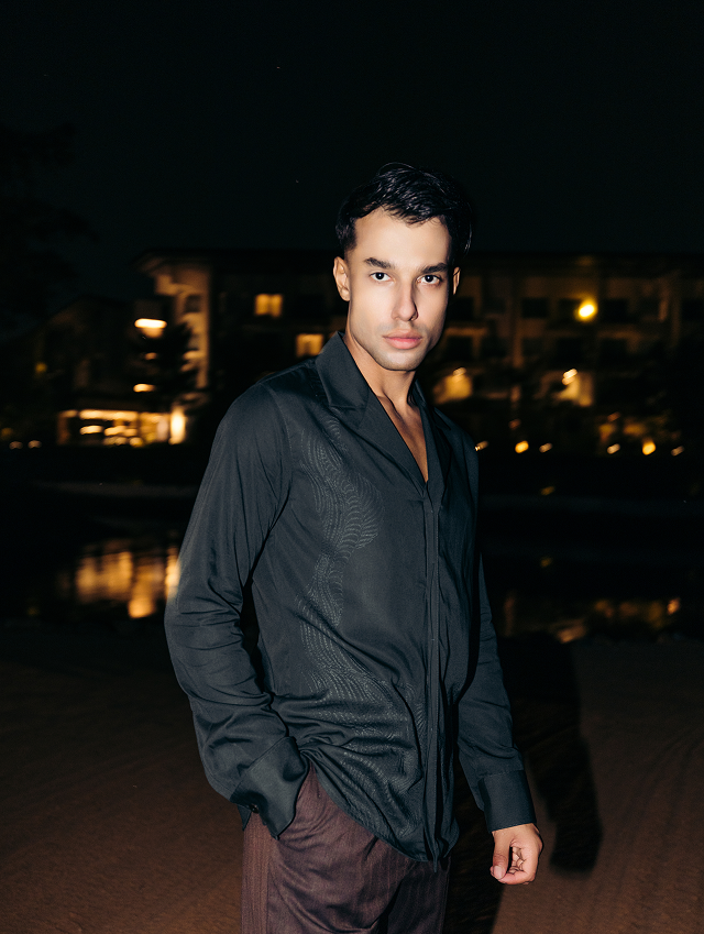 The Gigi Shirt strikes a balance between structure and intricacy. Its high Mandarin collar and boxy cropped fit set the tone, while elaborate thread embroidery and cutwork inspired by fish scales and wings lend a sense of movement. Gold-tone buttons punctuate the black base, a gleaming contrast that adds understated drama.