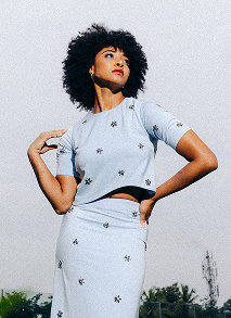 The Lyla Top in powder blue gracefully captures light. Its delicate fabric is scattered with three-dimensional beaded floral motifs with crystals and metallic beads that glimmer with quiet confidence. The relaxed, cropped silhouette features wide elbow-length sleeves and a slight high-low hem, lending a contemporary edge to its classic charm. It can be paired with the Lyla skirt as a cohesive co-ord set.